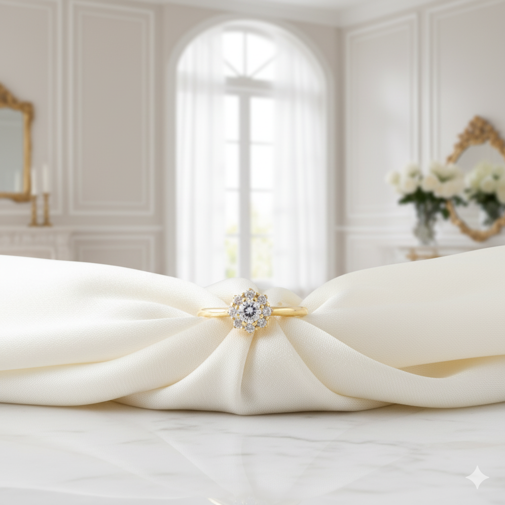 O Anel Fiore é uma joia que reflete a delicadeza e o encanto do florescer.