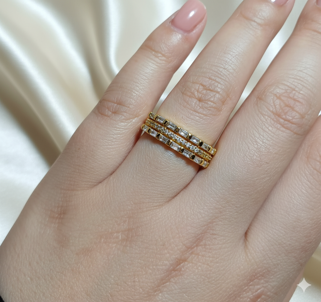 Com design imponente em três fileiras de zircônias lapidadas em baguete, ele reflete a beleza das joias imperiais — luxuosas, atemporais e cheias de história.
