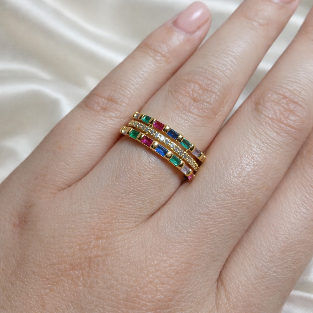 Disponível em duas versões — Cristal, com brilho clássico e sofisticado, e Colorido, que une o requinte das pedras preciosas à vivacidade das cores — o Anel Império é uma peça que transforma qualquer produção em puro destaque.
