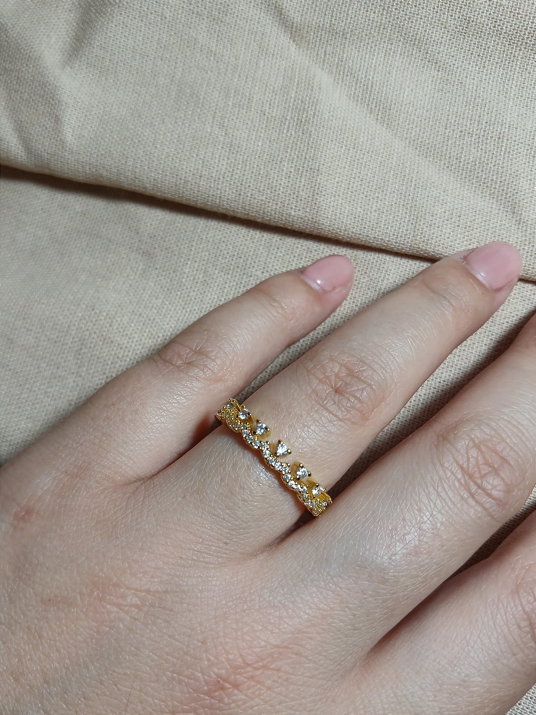 Anel que se assemelha a coroa com pedrinhas de zircônia.