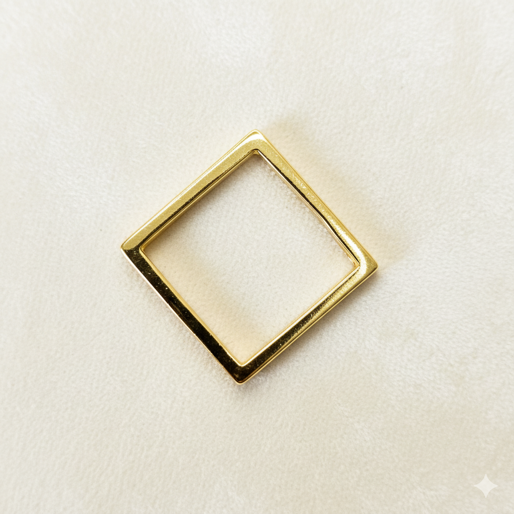 Inspirado nas formas geométricas da arquitetura moderna, seu formato quadrado e acabamento em banho de ouro traduzem equilíbrio, sofisticação e autenticidade.