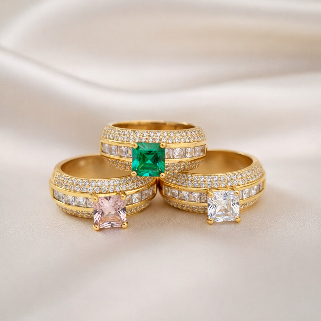 O Anel Regina é uma joia que reflete sofisticação e personalidade em cada detalhe. Com design marcante e acabamento impecável, ele combina o brilho do banho de ouro com pedras lapidadas em diferentes formatos e cores, criando um jogo de luz que encanta a cada movimento. Disponível em duas versões — colorida, com uma harmonia vibrante de tons preciosos, e cristal, com elegância atemporal — o Anel Regina é a escolha perfeita para mulheres que apreciam peças únicas e cheias de expressão. Versátil e moderno, ele pode ser usado sozinho como protagonista do look ou combinado com outros anéis para composições ousadas e sofisticadas. ✨ Destaques: Cravação minuciosa com pedras lapidadas em diferentes formatos Banho de ouro de alta durabilidade e brilho intenso Disponível nas versões Colorida e Cristal