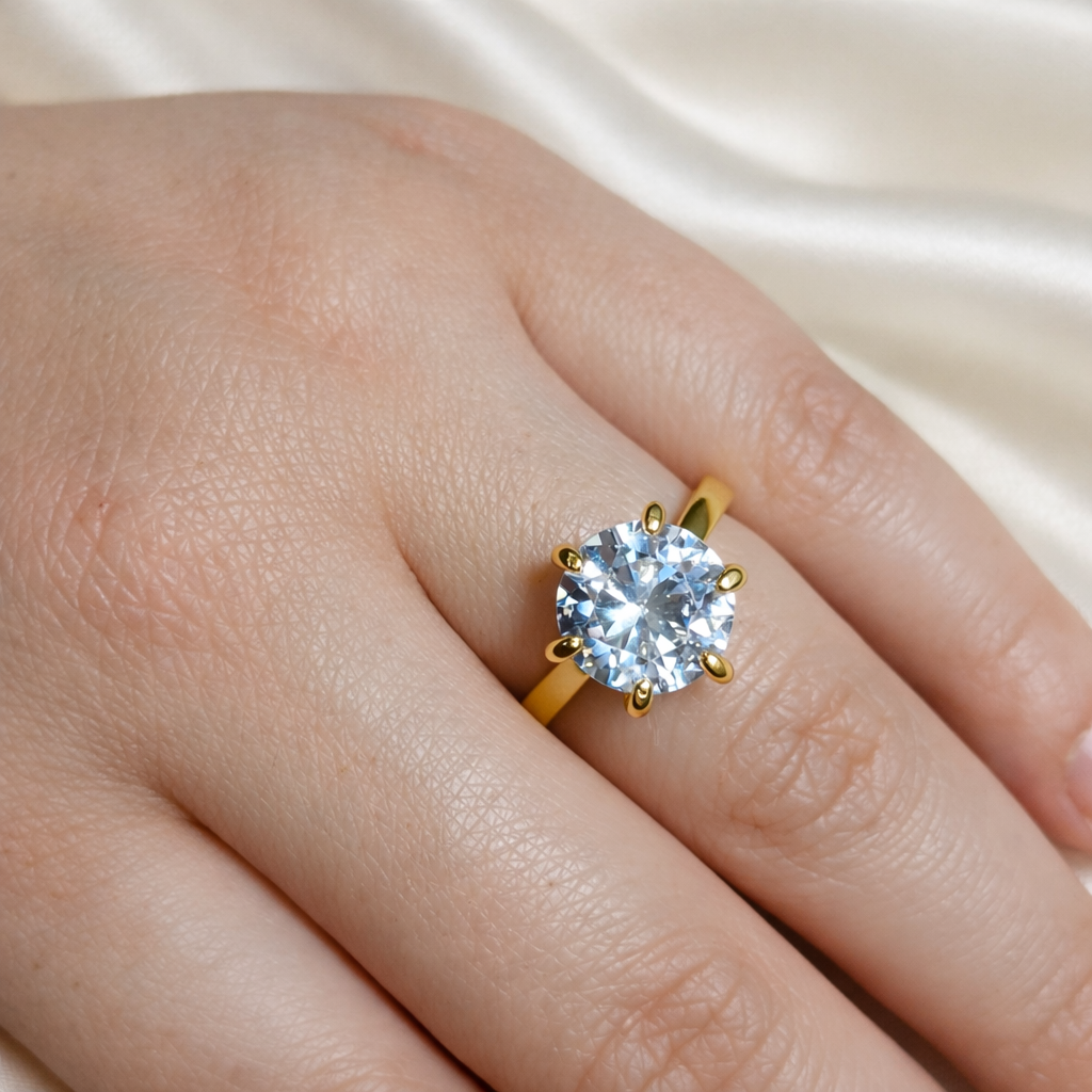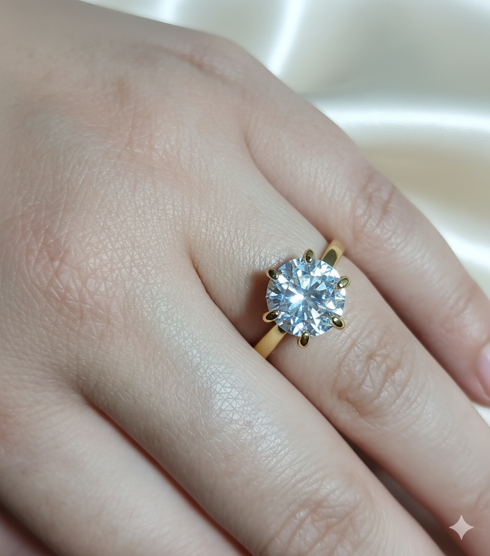 Solitário com zircônia GG lapidada em formato redondo