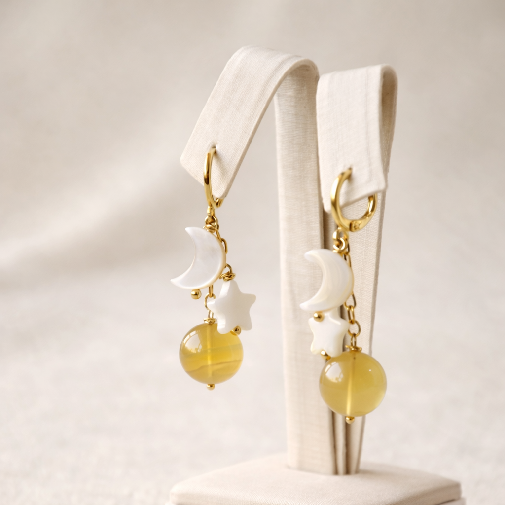 A estrela e a lua, em madrepérola, simbolizam os ciclos e o equilíbrio entre energia e calma, força e suavidade.