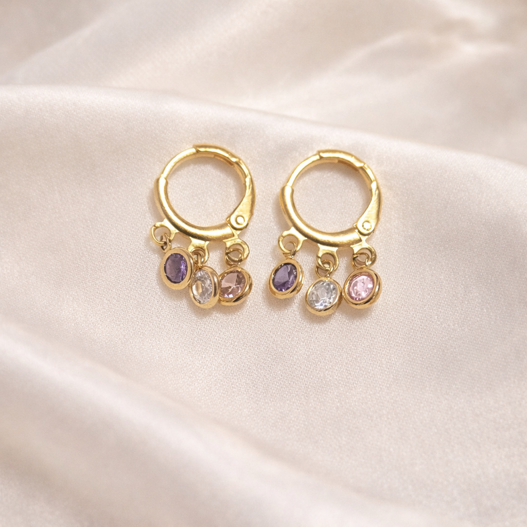Com três zircônias pendentes, reflete a luz com sutileza e traz aquele toque de brilho discreto que ilumina sem exageros.