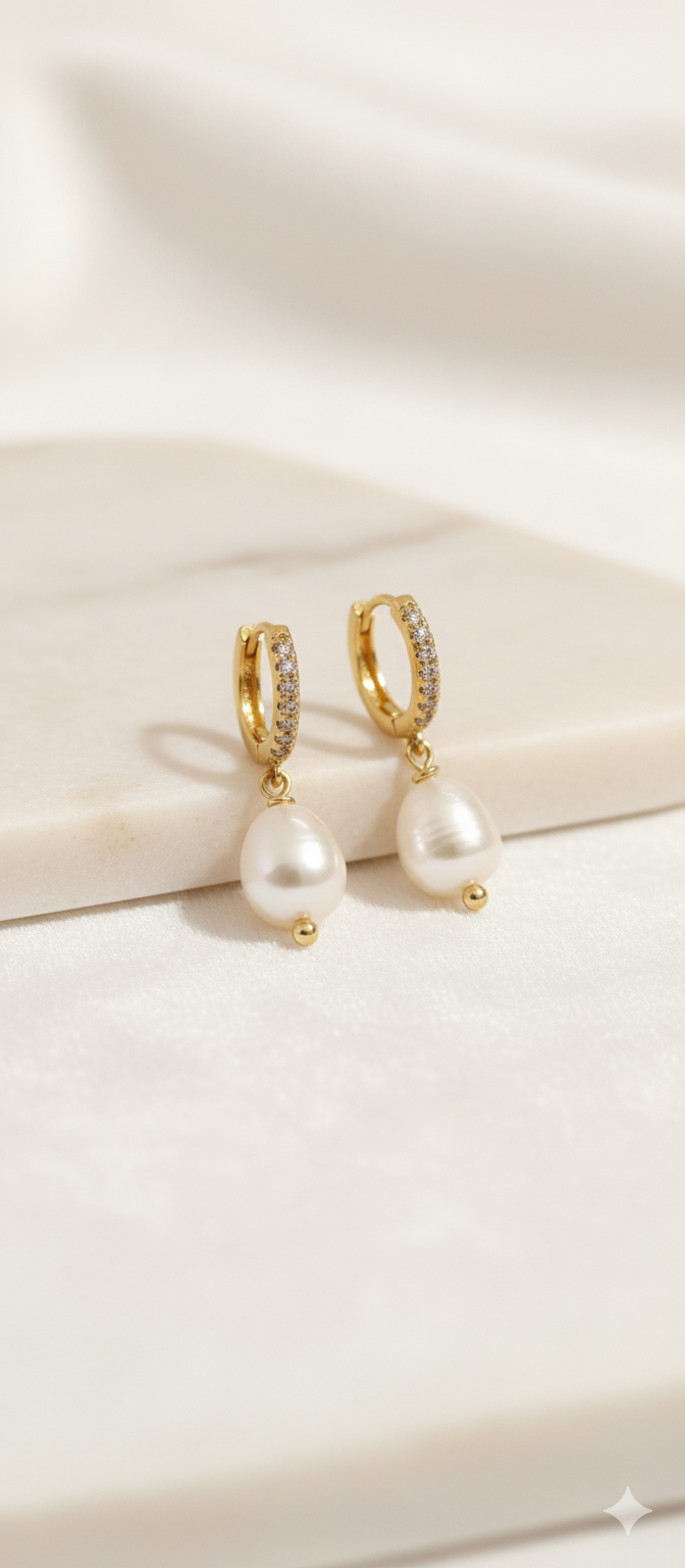 Leve e versátil, é a peça perfeita para iluminar o rosto com charme discreto, equilibrando o brilho moderno das zircônias com a suavidade clássica da pérola.