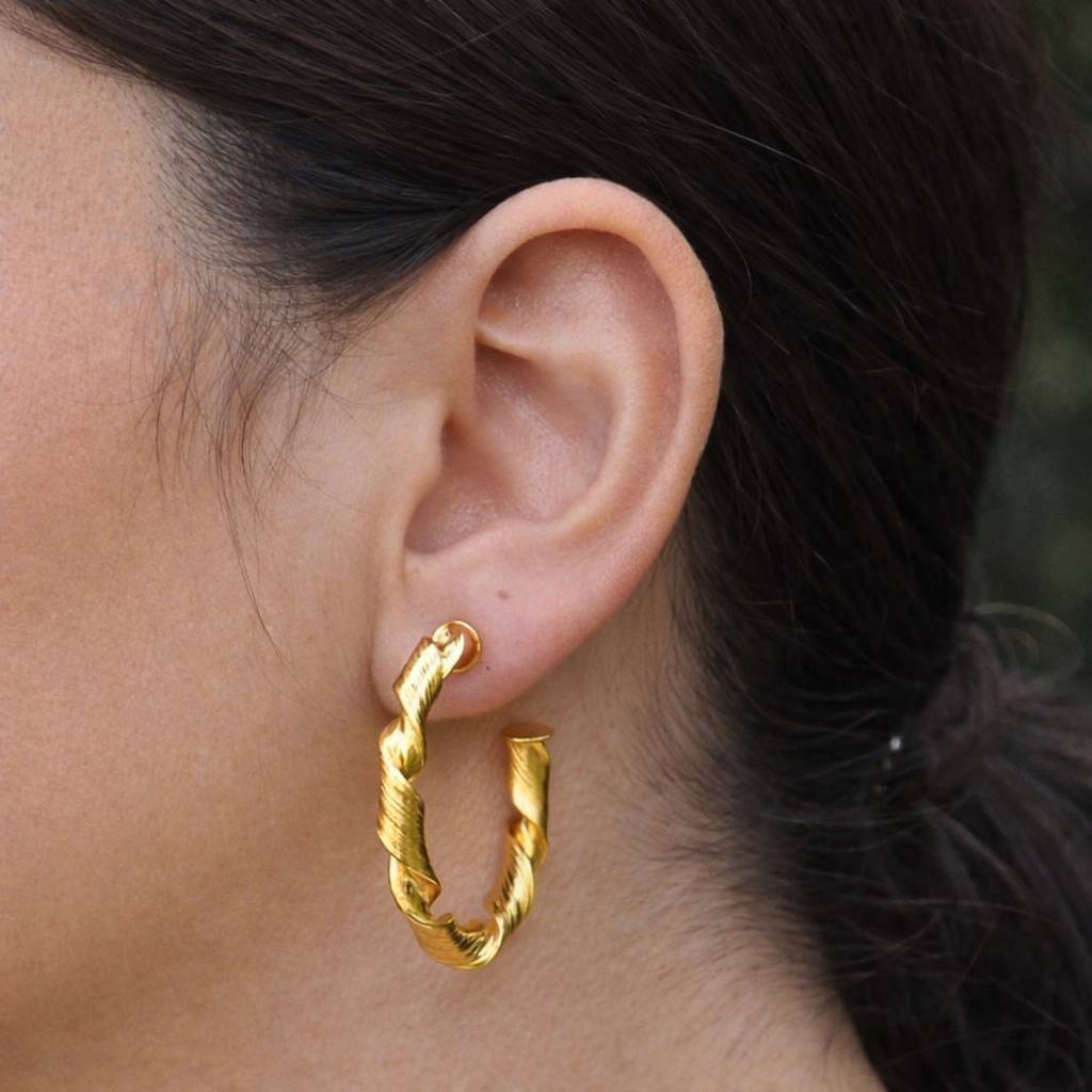 Com design torcido e acabamento em ouro, ela reflete o movimento natural da energia que envolve cada mulher — suave, mas poderosa.