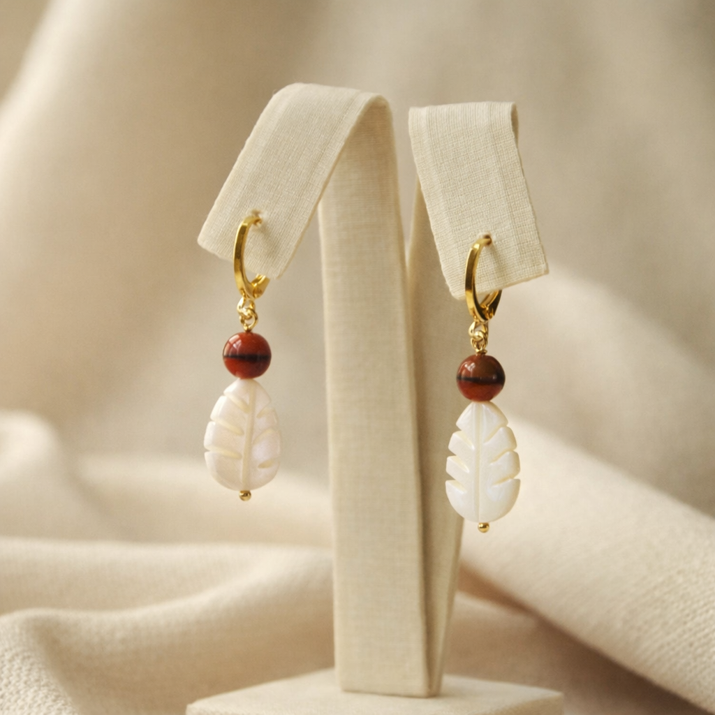 Com folha de madrepérola e pedra natural olho de boi, ela representa o equilíbrio entre a leveza e a força — um convite a abraçar os ciclos da vida com serenidade e sabedoria.