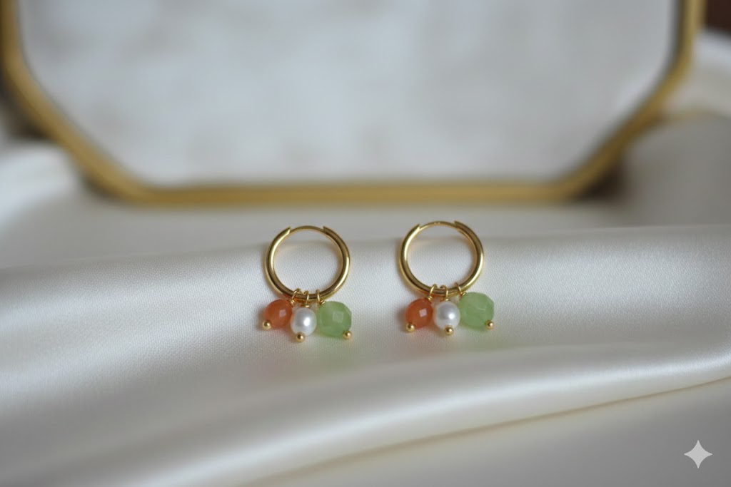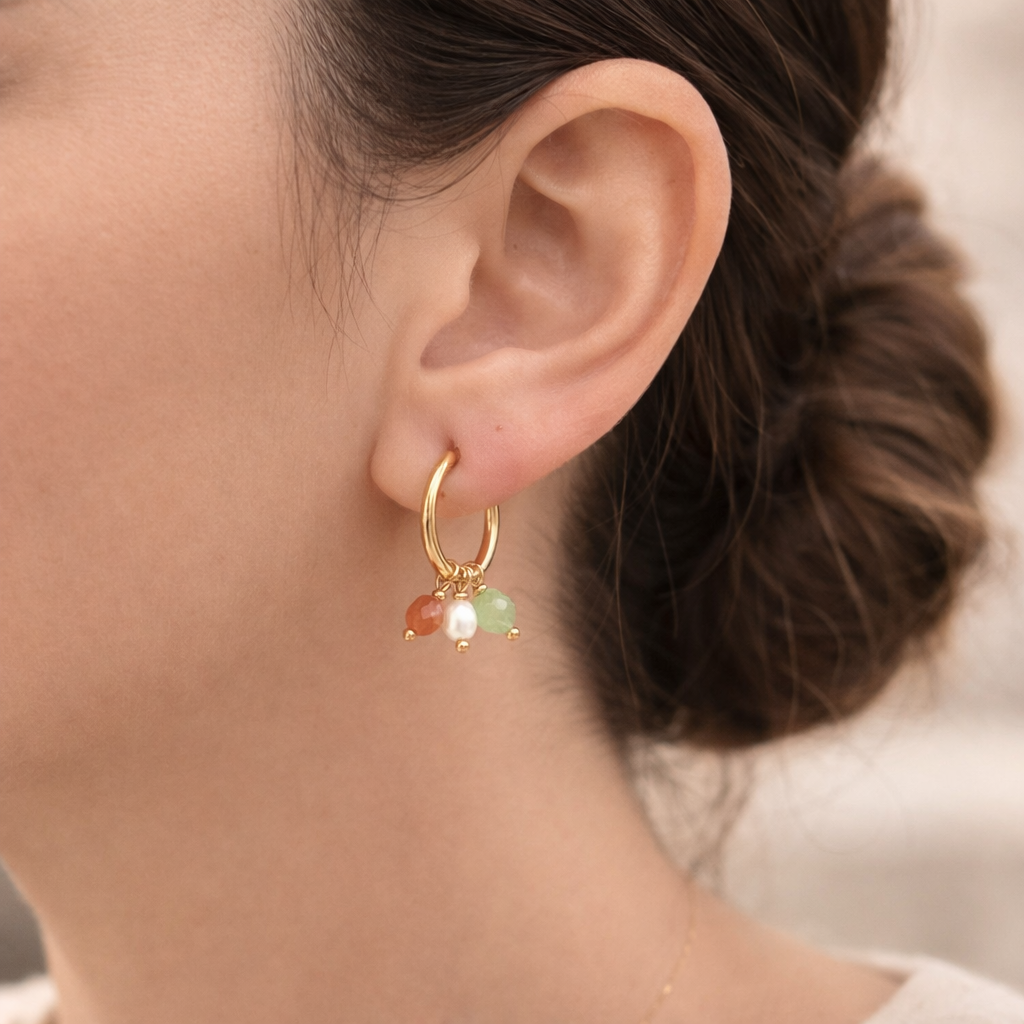 Inspirada no equilíbrio suave das cores do entardecer, a Argola Versàtile – Luz Serena traduz a elegância tranquila das mulheres que carregam luz por onde passam. Feita à mão, com banho de ouro de alta qualidade, esta joia permite múltiplas formas de uso: pode ser usada sozinha para um visual minimalista, com um único pingente para um toque leve, com dois ou três para trazer personalidade, ou até transformada como pingente em correntes.