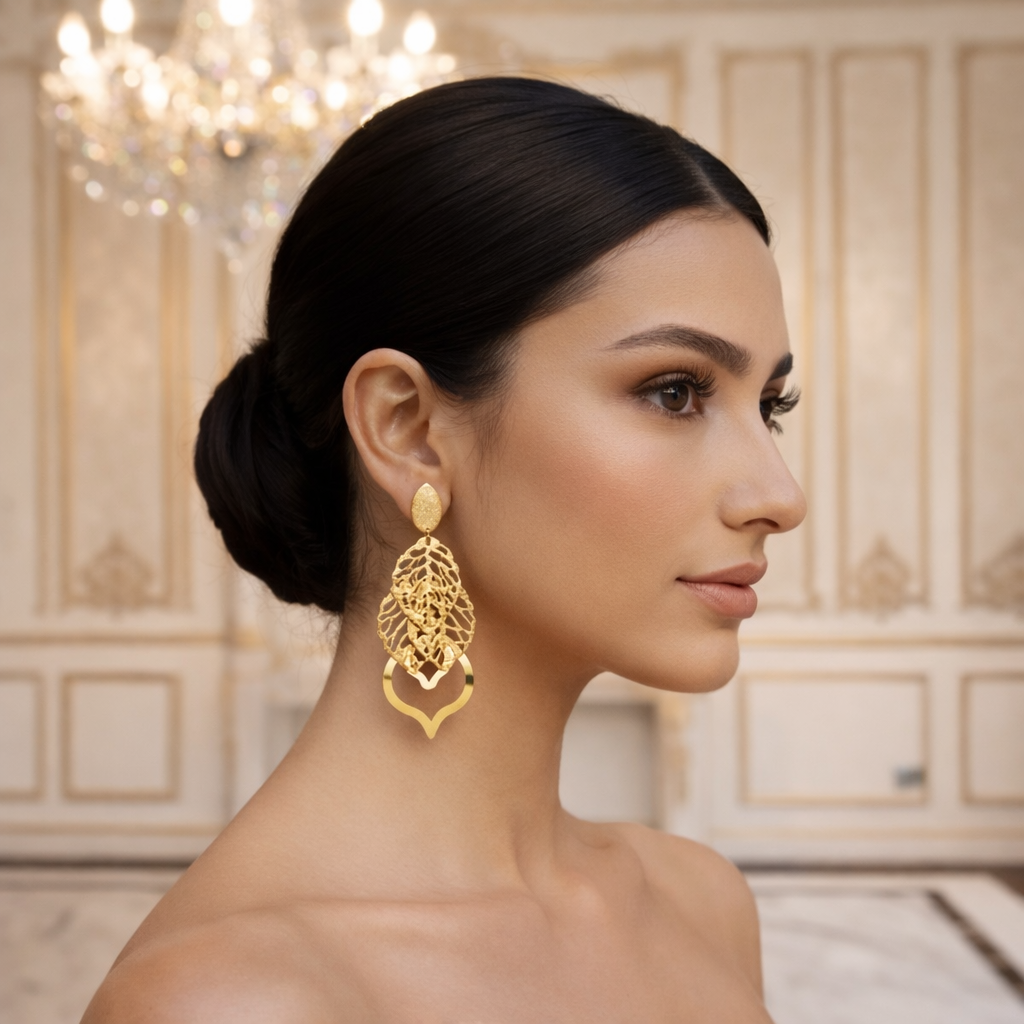 Mesmo sendo um maxi-brinco, é surpreendentemente leve — desenhado para proporcionar presença marcante com absoluto conforto.