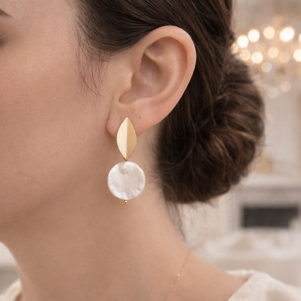 O Brinco Alba é uma joia que celebra a elegância primordial da mulher. Um desenho autoral que combina o brilho acetinado do metal dourado com a beleza singular da pérola moeda, conhecida por seu formato raro e por sua superfície luminosa, formada por camadas ricas de nácar. Cada pérola é única, como uma impressão digital da natureza — um detalhe que transforma este brinco em uma peça de caráter artístico e exclusivo.