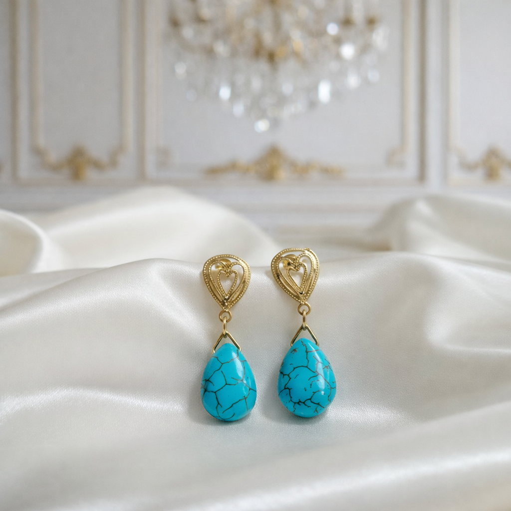 O Brinco Serena Bleu foi criado para mulheres que desejam transmitir autenticidade com elegância. A beleza da turquesa natural, conhecida por sua tonalidade azul única, adiciona um toque de luminosidade aos traços, enquanto a base em banho de ouro de alta qualidade traz sofisticação e acabamento impecável.