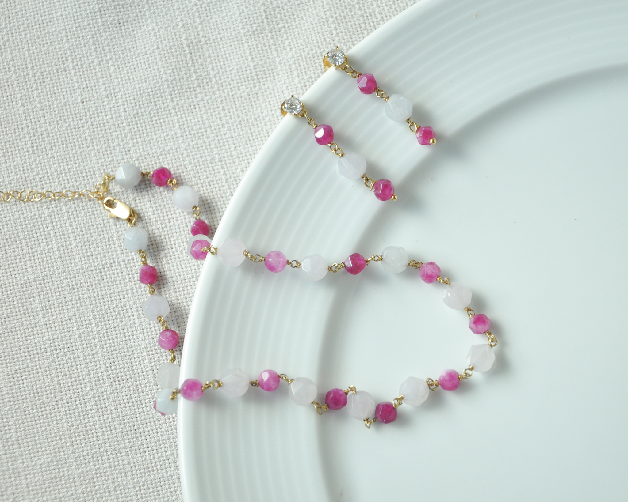 O colar Aurora é feito à mão com duas pedras preciosas e simbólicas: