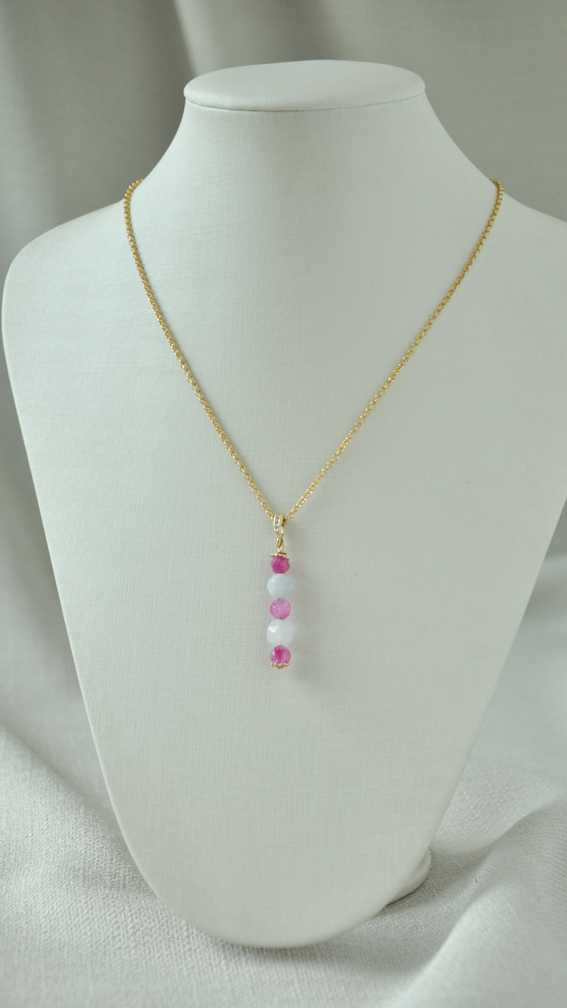O colar Aurora é feito à mão com duas pedras preciosas e simbólicas: Água-marinha facetada, que transmite clareza emocional e serenidade. Turmalina rosa facetada, que fortalece o amor-próprio e a sensibilidade feminina.