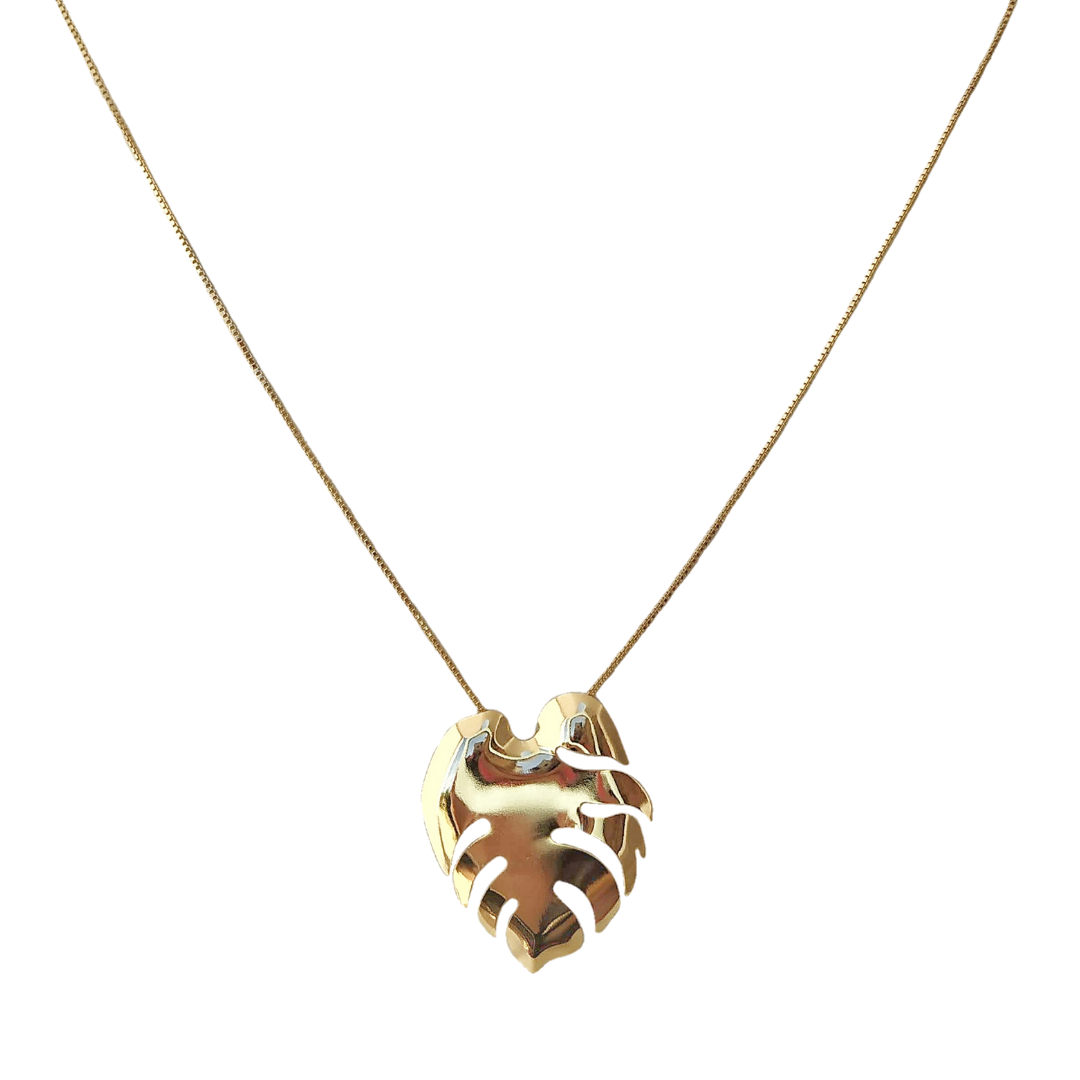 Colar corrente veneziana com pingente de folha de plátano.