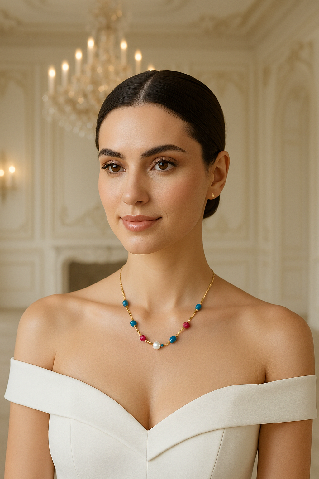 O Colar Lumina é uma joia autoral criada para celebrar luz, cor e feminilidade.
