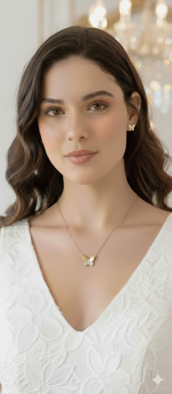 O Conjunto Serafine foi criado para mulheres que irradiam uma beleza leve, luminosa e naturalmente elegante. Inspirado na delicadeza das asas de uma borboleta — símbolo universal de renascimento e expansão — cada peça reflete a transformação silenciosa que acontece dentro de nós quando escolhemos viver com mais verdade, suavidade e presença.