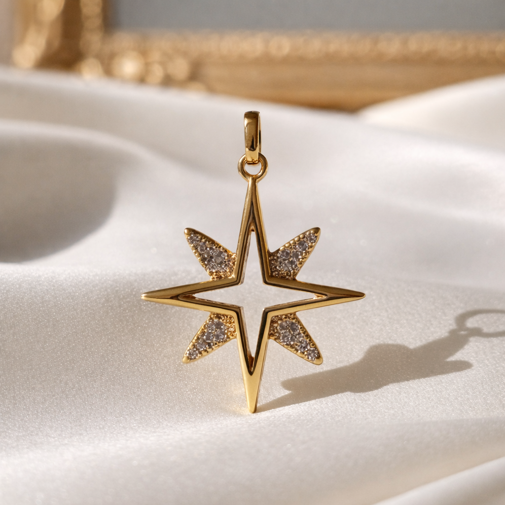 O Pingente Rosa dos Ventos representa mais do que um detalhe de estilo – ele simboliza direção, coragem e a liberdade de seguir o próprio caminho. Com design sofisticado e banho de ouro de alta qualidade, sua forma clássica remete à bússola que orienta navegadores há séculos, marcando o ponto de partida para grandes jornadas.