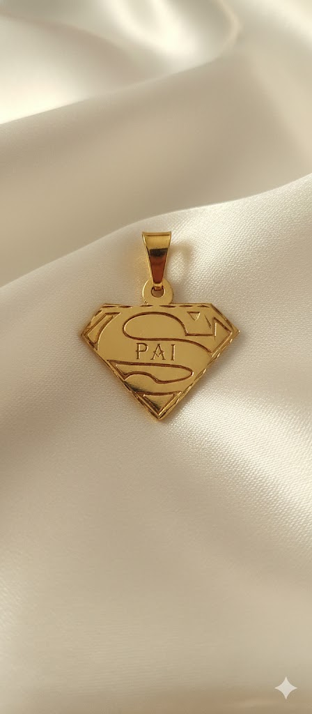 Um presente que fala por si. O pingente Super Pai celebra a figura paterna com elegância e afeto. Produzido com banho de ouro de alta qualidade, traz o icônico símbolo de força e proteção aliado à palavra "PAI", destacando o verdadeiro herói da nossa história. Ideal para pais modernos que valorizam significado, estilo e conexão emocional. Perfeito para presentear em datas especiais ou quando as palavras não são suficientes.